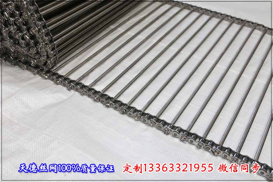 鏈桿輸送帶可采用碳鋼、不銹鋼201/304/316不銹鋼材料,以鏈條傳動,鏈條可選用標準鏈條和雙節(jié)距輸送鏈條使網帶受力減小容易安裝網帶的附屬配件,如擋板,側翼,用于輸送固體物料,通透性好,易清洗. 旋的繞絲串起來形成平衡編織的輸送網,螺距能做到3毫米,每1米寬網帶有333個圈。節(jié)距能做到6毫米,每1米網帶長有166根曲軸。 該網帶通常網絲是圓的,但也可以制作成扁絲的。材料可選碳鋼、201不銹鋼、304不銹鋼、316不銹鋼等。