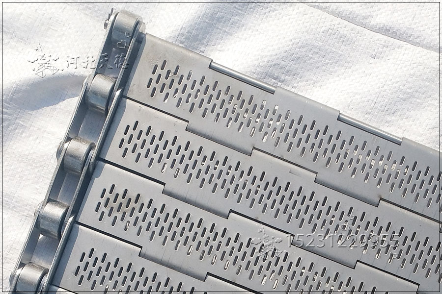 鋼板彎曲成合頁,使用支軸串在一起,輸送面呈一個(gè)平面