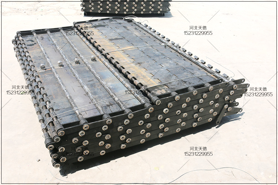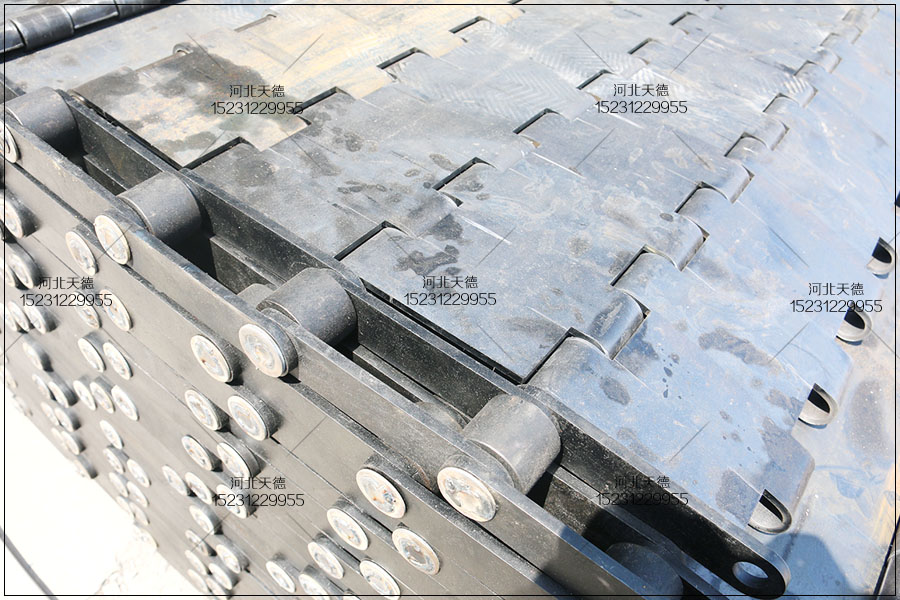 這個(gè)是張家口的客戶(hù)定制的,用來(lái)傳送金屬?gòu)U料使用,安裝在大型的重型設(shè)備中,需要加厚板加工,承載為載重鏈板輸送帶。