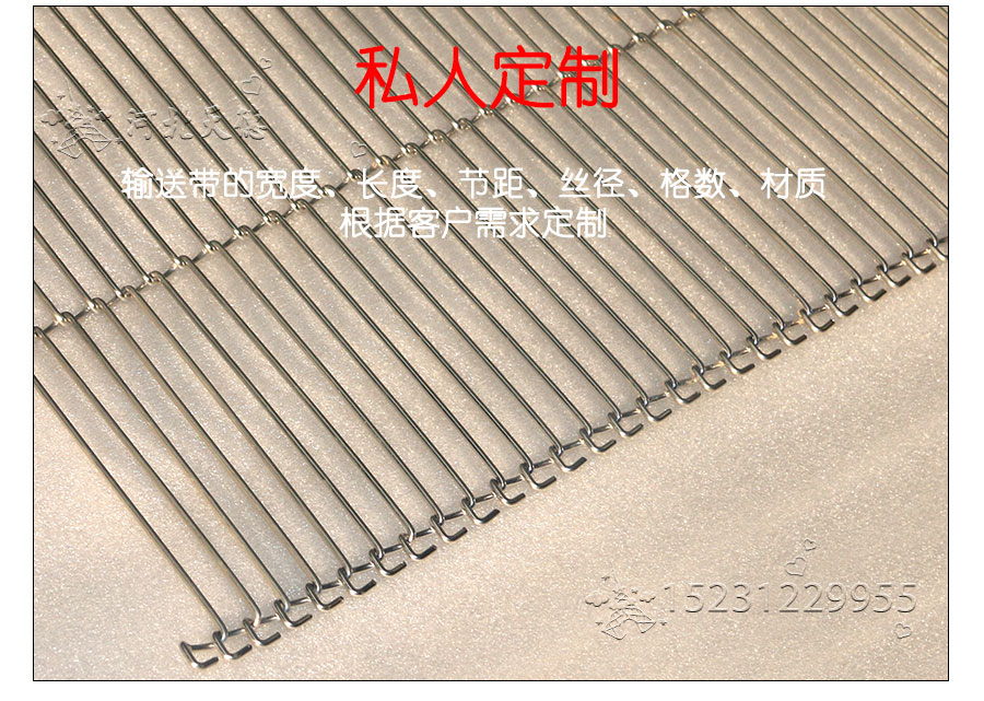 不銹鋼網(wǎng)帶屬于非標準件,我們將根據(jù)你提供的規(guī)格長寬,材質(zhì),不銹鋼絲線徑,編制結(jié)構(gòu)尺寸,支軸直徑,支軸間距,鏈條型號等數(shù)據(jù)制作.