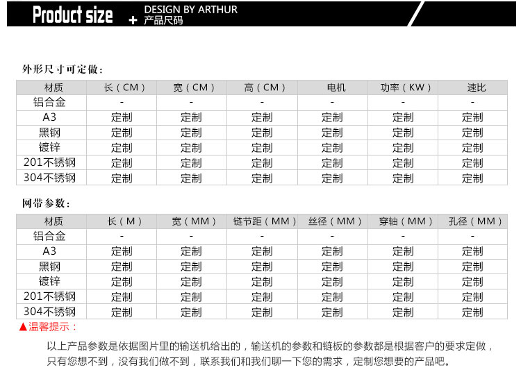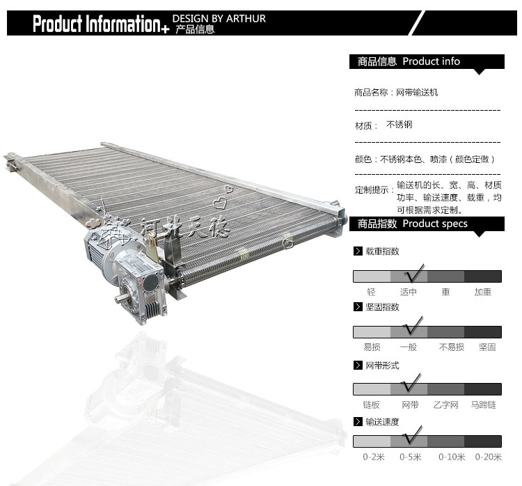 可根據(jù)客戶需求進(jìn)行設(shè)計私人訂制,如果您需要更詳細(xì)的網(wǎng)帶輸送機(jī)/食品網(wǎng)帶輸送機(jī)/網(wǎng)帶輸送線/網(wǎng)帶流水線產(chǎn)品信息,解決方案和報價,請聯(lián)系客服,我們會為您提供熱情的服務(wù)。