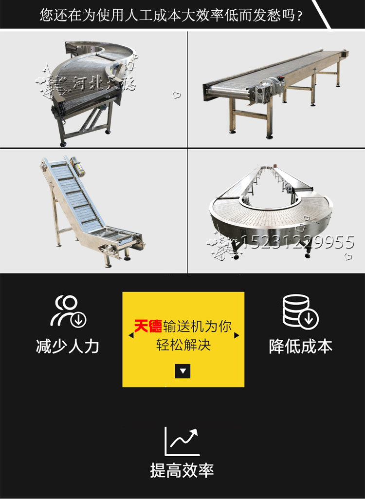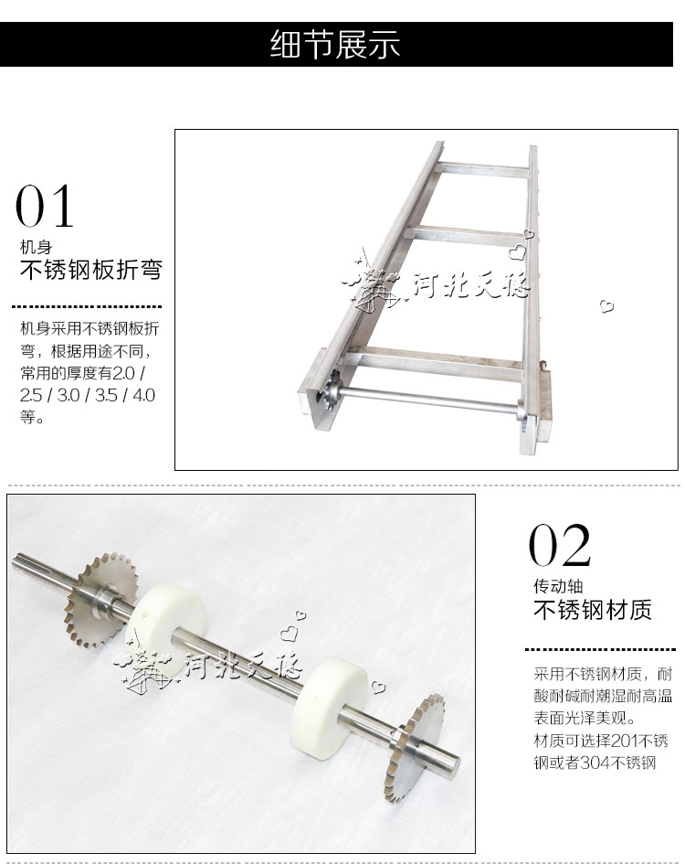 1.網(wǎng)帶輸送機(jī)以不銹鋼網(wǎng)帶為輸送介質(zhì),其特性堅固,耐磨、不拍尖銳的物品劃傷,輸送豬肉、雞鴨、魚蝦等干凈衛(wèi)生;